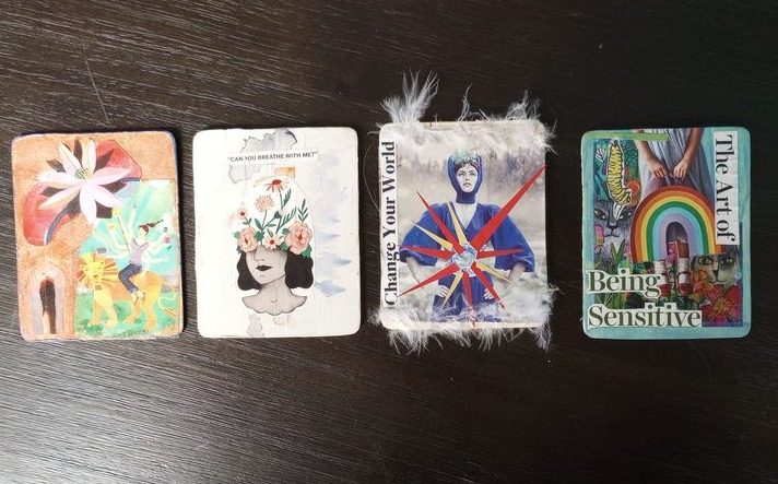 Join Our Vibrant Community to create a tarot card. All supplies and basic tarot instruction are provided. You're welcome to bring images you've been collecting or found objects like buttons, fabric swatches, stickers.
