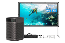 This pack includes everything you need to host an outdoor movie night: portable projector, movie screen, Blu-ray player, and Bluetooth speaker.